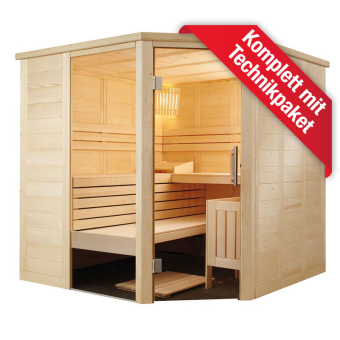 Incl. Sauna-Technikpaket "Finntrend Edition" für klassische Finnische Sauna oder "Combitrend" für Bio-Klimasauna mit Verdampfer.
