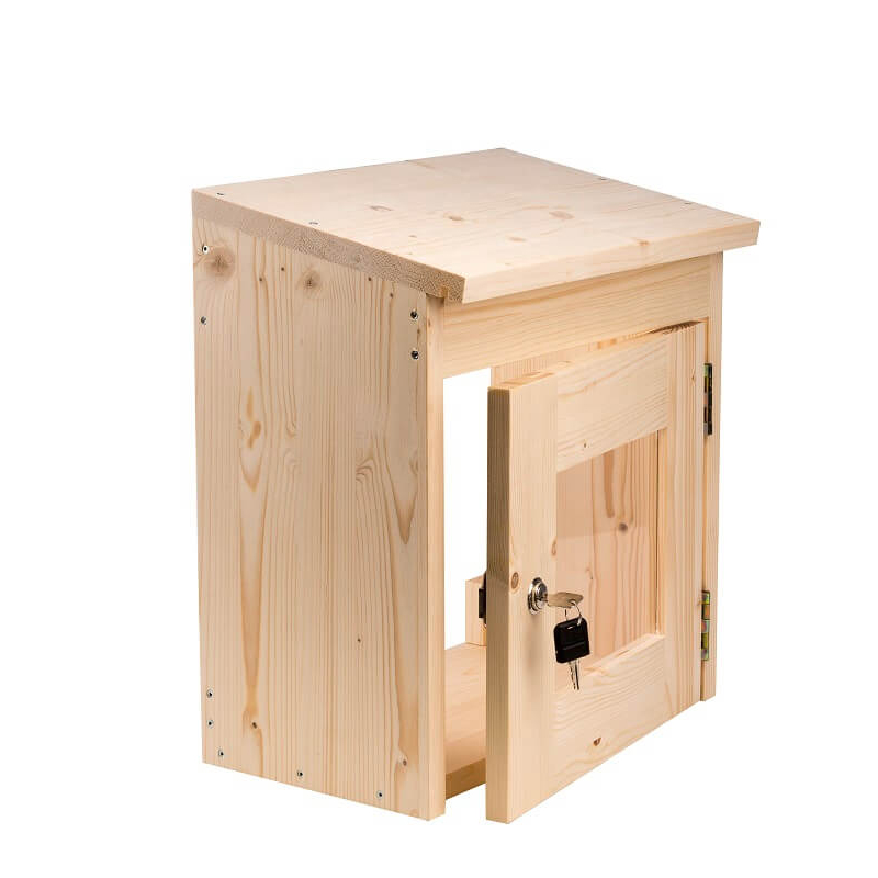 Schutzgehäuse für Sauna-Steuergerät mit abschließbarer Tür und Glaseinsatz.