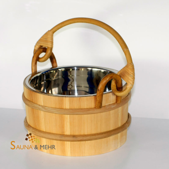 Sauna Aufgusseimer | Aufgusskübel | Saunakübel | aus Nadelholz mit Edelstahleinsatz und Rattanhenkel in rustikalem Design
