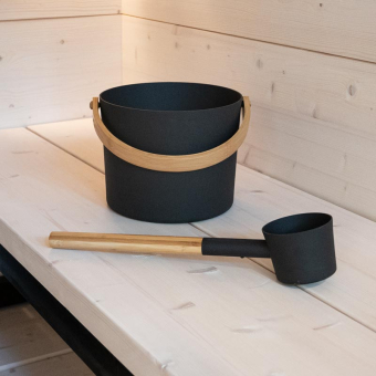 HARVIA Zubehör-Set "Black" bestehend aus Aufgußkübel und Kelle ergänzen perfekt Ihre Saunaeinrichtung.