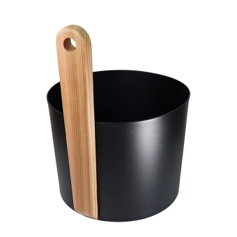 • Aufgusskübel für 5 Ltr. Wasser aus Aluminium in mattem Schwarz mit Griff aus kanadischem Zedernholz