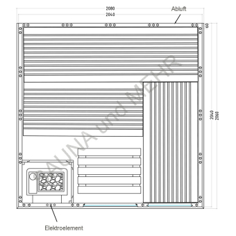 wood.LINE Classic Massivholz-Sauna - 204 x 204 cm - Links